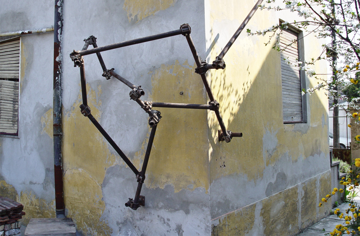 Causes and Consequences of sculptural form movements within open and closed spaces. A scaffold allows for easy manipulation and interpretation of elements, according to movement and shapes' composition principles. The sculptures emulate the freedom of a seemingly arbitrary progression. Their creation is a game of seeking visually acceptable conditions to allow them to further develop through the space.